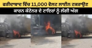 ਫਰੀਦਾਬਾਦ ਵਿੱਚ 11,000 ਵੋਲਟ ਲਾਈਨ ਨਾਲ ਟਕਰਾਉਣ ਕਾਰਨ ਕੰਟੇਨਰ ਦੇ ਟਾਇਰਾਂ ਨੂੰ ਲੱਗੀ ਅੱਗ