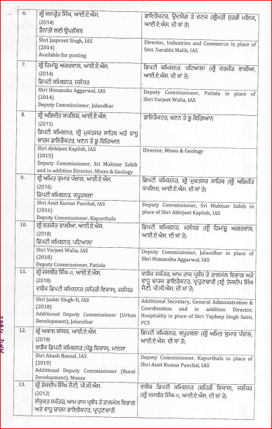 ਪੰਜਾਬ ‘ਚ ਵੱਡਾ ਪ੍ਰਸ਼ਾਸਨਿਕ ਫੇਰਬਦਲ ਕੀਤਾ ਗਿਆ ਹੈ। ਜਾਰੀ ਤਾਜ਼ਾ ਹੁਕਮਾਂ ਅਨੁਸਾਰ 12 IAS ਤੇ 1 PCS ਅਧਿਕਾਰੀਆਂ ਦੀਆਂ ਬਦਲੀਆਂ ਅਤੇ ਤੈਨਾਤੀਆਂ ਤੁਰੰਤ ਪ੍ਰਭਾਵ ਨਾਲ ਕੀਤੀਆਂ ਗਈਆਂ ਹਨ। ਇਸ ਸਬੰਧੀ ਪੂਰੀ ਲਿਸਟ ਹੇਠ ਲਿਖੇ ਅਨੁਸਾਰ ਹੈ…