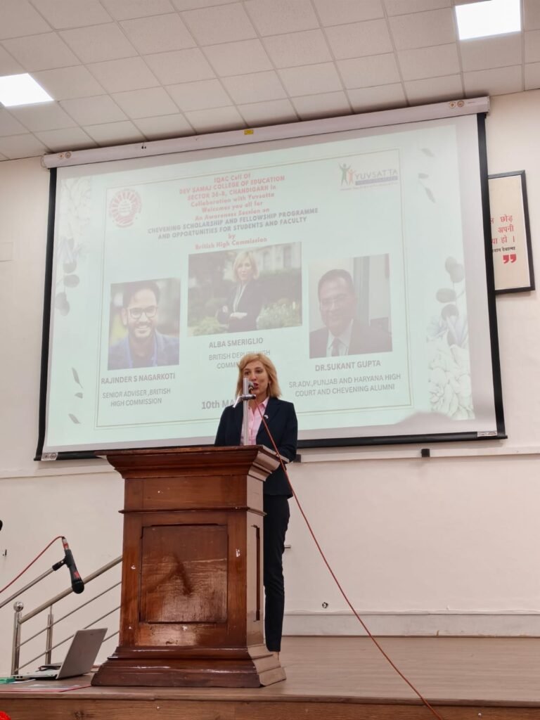 Chevening Scholarship Chandigarh; ਬ੍ਰਿਟਿਸ਼ ਡਿਪਟੀ ਹਾਈ ਕਮਿਸ਼ਨ, ਚੰਡੀਗੜ੍ਹ ਨੇ ਦੇਵ ਸਮਾਜ ਕਾਲਜ ਆਫ ਐਜੂਕੇਸ਼ਨ, ਸੈਕਟਰ-36, ਚੰਡੀਗੜ੍ਹ ਅਤੇ ਯੁਵਸੱਤਾ ਦੇ ਸਹਿਯੋਗ ਨਾਲ ਮੰਗਲਵਾਰ ਨੂੰ ਚੀਵਨਿੰਗ ਸਕਾਲਰਸ਼ਿਪ ਅਤੇ ਫੈਲੋਸ਼ਿਪ ਬਾਰੇ ਇਕ ਜਾਗਰੂਕਤਾ ਸੈਸ਼ਨ ਕਰਵਾਇਆ। ਇਸ ਸੈਸ਼ਨ ਦਾ ਮਕਸਦ ਵਿਦਿਆਰਥੀਆਂ ਅਤੇ ਨੌਜਵਾਨਾਂ ਨੂੰ ਯੂਨਾਈਟਡ ਕਿੰਗਡਮ ਵਿੱਚ ਉੱਚ ਸਿੱਖਿਆ ਦੇ ਮੌਕਿਆਂ ਬਾਰੇ ਜਾਣਕਾਰੀ ਦੇਣਾ ਅਤੇ ਵਧ ਰਹੇ ਵੀਜ਼ਾ ਅਤੇ ਇਮੀਗ੍ਰੇਸ਼ਨ ਧੋਖਾਧੜੀ ਦੇ ਮਾਮਲਿਆਂ ਬਾਰੇ ਜਾਗਰੂਕ ਕਰਨਾ ਸੀ।