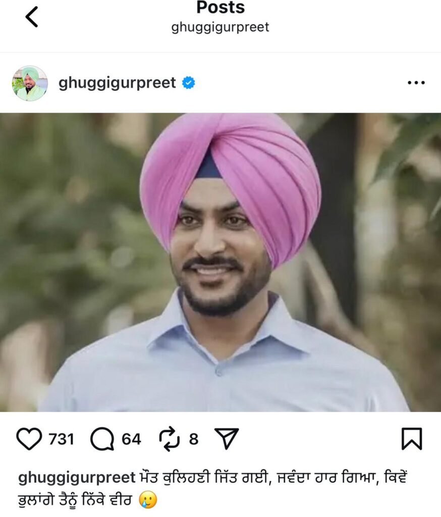 ਪੰਜਾਬੀ ਫਿਲਮ ਅਦਾਕਾਰ ਗੁਰਪ੍ਰੀਤ ਘੁੱਗੀ ਨੇ ਪੋਸਟ ਸਾਂਝੀ ਕਰ ਦੁੱਖ ਦਾ ਪ੍ਰਗਟਾਵਾ ਕੀਤਾ
