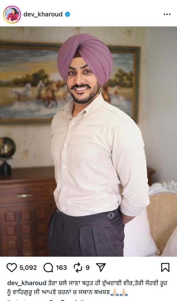 ਪੰਜਾਬੀ ਫਿਲਮ ਅਦਾਕਾਰ Dev Kharoud ਨੇ ਪੋਸਟ ਸਾਂਝੀ ਕਰ ਦੁੱਖ ਦਾ ਪ੍ਰਗਟਾਵਾ ਕੀਤਾ