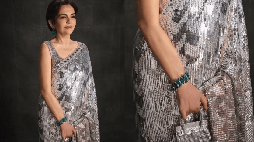 ਨੀਤਾ ਅੰਬਾਨੀ ਨੇ ਇੱਕ ਮੇਲ ਖਾਂਦਾ ਹੀਰਾ-ਐਮਰਾਲਡ ਬਰੇਸਲੇਟ ਪਹਿਨਿਆ ਸੀ, ਜਿਸਨੇ ਉਸਦੀ ਸਾੜੀ ਦੀ ਧਾਤੂ ਚਮਕ ਨੂੰ ਹੋਰ ਵਧਾਇਆ। ਜਦੋਂ ਕਿ ਉਸਨੇ ਕੋਈ ਉਪਕਰਣ ਨਹੀਂ ਪਹਿਨਿਆ ਸੀ, ਉਹ ਇੱਕ ਸਵਰਗੀ ਦੂਤ ਤੋਂ ਘੱਟ ਨਹੀਂ ਲੱਗ ਰਹੀ ਸੀ।