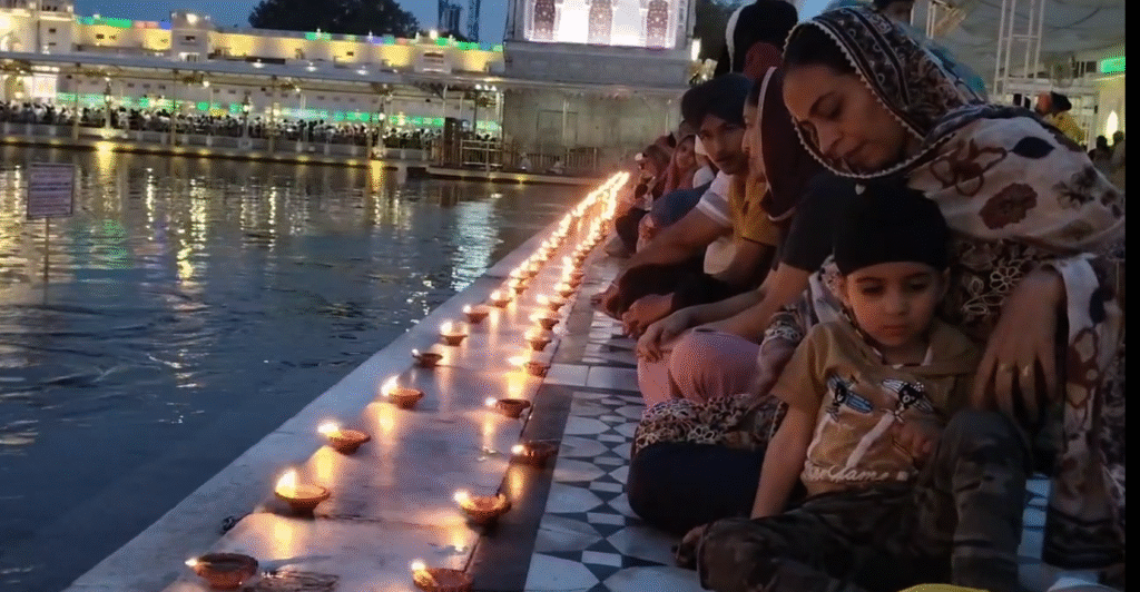 ਇਸ ਮੌਕੇ ਸ੍ਰੀ ਹਰਿਮੰਦਰ ਸਾਹਿਬ ਵਿਖੇ ਦੇਸ਼ੀ ਘਿਉ ਦੇ ਦੀਵੇ ਜਗਾ ਕੇ ਸ਼ਾਨਦਾਰ ਦੀਪਮਾਲਾ ਕੀਤੀ ਗਈ, ਜਿਸ ਨਾਲ ਸਾਰਾ ਪਰਿਸਰ ਰੌਸ਼ਨੀ ਨਾਲ ਚਮਕ ਉਠਿਆ। ਰਾਤ ਦੇ ਸਮੇਂ ਕੀਤੀ ਗਈ ਅਲੌਕਿਕ ਆਤਿਸ਼ਬਾਜ਼ੀ ਨੇ ਹਾਜ਼ਰ ਸੰਗਤਾਂ ਨੂੰ ਮੋਹ ਲਿਆ ਅਤੇ ਆਧਿਆਤਮਿਕ ਖੁਸ਼ੀ ਦਾ ਮਾਹੌਲ ਤਿਆਰ ਹੋਇਆ। ਸੰਗਤਾਂ ਨੇ ਇਸ ਦ੍ਰਿਸ਼ ਨੂੰ ਬੜੀ ਸ਼ਰਧਾ ਅਤੇ ਉਤਸ਼ਾਹ ਨਾਲ ਨਿਹਾਰਿਆ।