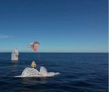 ਅੰਤਰਰਾਸ਼ਟਰੀ ਪੁਲਾੜ ਸਟੇਸ਼ਨ (ISS) ਤੋਂ ਧਰਤੀ ਤੱਕ ਪੁਲਾੜ ਯਾਤਰੀਆਂ ਦੇ ਪੂਰੇ ਸਫ਼ਰ ਵਿੱਚ ਲਗਭਗ 17 ਘੰਟੇ ਲੱਗੇ।