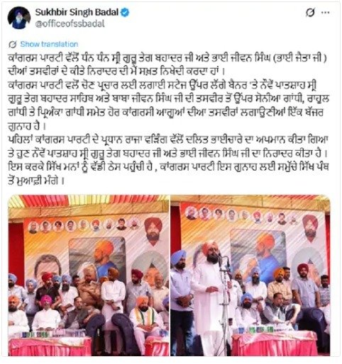 ਪਹਿਲਾਂ, ਪੰਜਾਬ ਕਾਂਗਰਸ ਦੇ ਮੁਖੀ ਰਾਜਾ ਵੜਿੰਗ ਨੇ ਦਲਿਤ ਭਾਈਚਾਰੇ ਦਾ ਅਪਮਾਨ ਕੀਤਾ। ਹੁਣ, ਉਨ੍ਹਾਂ ਨੇ ਨੌਵੇਂ ਗੁਰੂ, ਗੁਰੂ ਤੇਗ ਬਹਾਦਰ ਜੀ ਅਤੇ ਭਾਈ ਜੀਵਨ ਸਿੰਘ ਜੀ ਦਾ ਅਪਮਾਨ ਕੀਤਾ ਹੈ। ਇਸ ਨਾਲ ਸਿੱਖਾਂ ਦੀਆਂ ਭਾਵਨਾਵਾਂ ਨੂੰ ਡੂੰਘੀ ਠੇਸ ਪਹੁੰਚੀ ਹੈ।