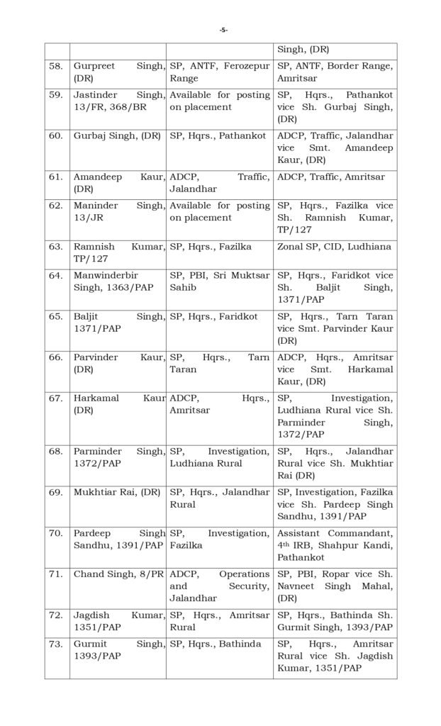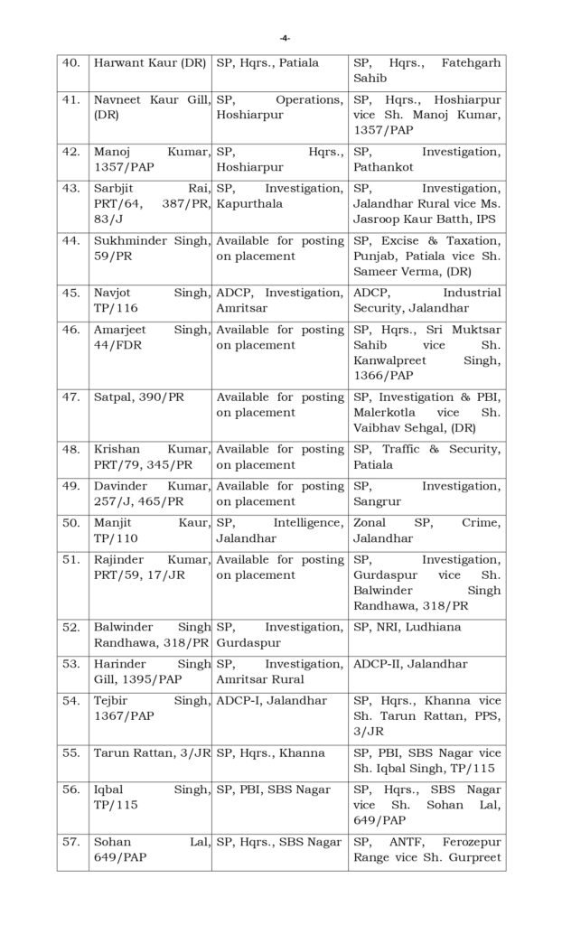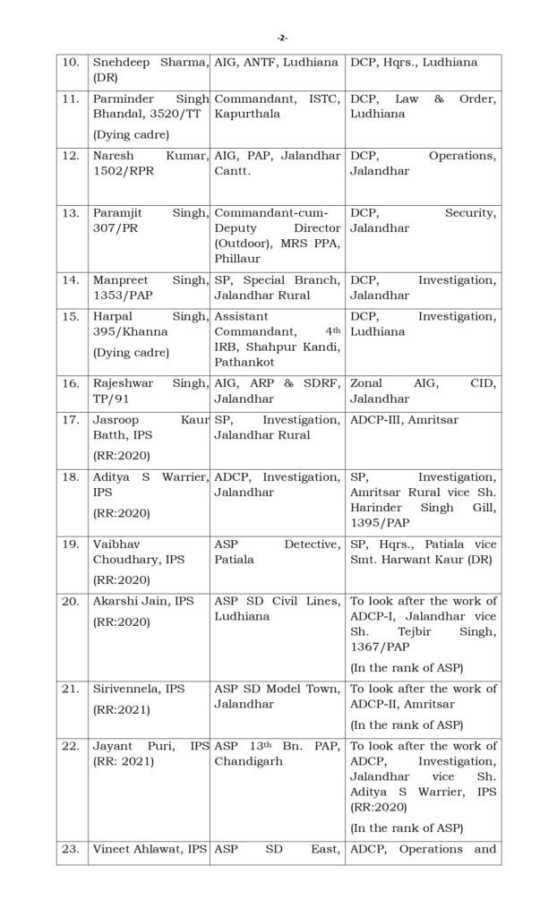 Punjab Police Transfers’ Order: ਪੰਜਾਬ ਪੁਲਿਸ ਚ ਵੱਡੇ ਪੱਧਰ ਤੇ ਤਬਾਦਲੇ, ਦੇਖੋ ਪੂਰੀ ਲਿਸਟ