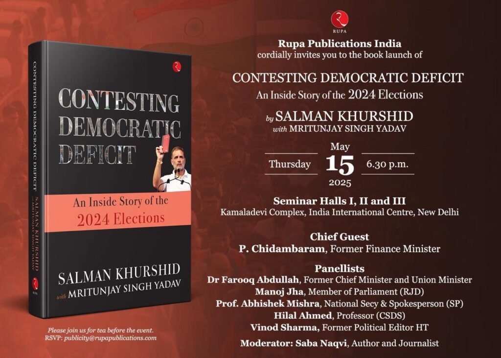 ਸਾਬਕਾ ਕੇਂਦਰੀ ਕਾਨੂੰਨ ਮੰਤਰੀ ਤੇ ਵਿਦੇਸ਼ ਮੰਤਰੀ ਸਲਮਾਨ ਖੁਰਸ਼ੀਦ ਅਤੇ 2024 ਦੀਆਂ ਲੋਕ ਸਭਾ ਚੋਣਾਂ ਦੌਰਾਨ ਕਾਂਗਰਸ ਵਾਰ ਰੂਮ ਦਾ ਹਿੱਸਾ ਰਹੇ ਮ੍ਰਿਤੁੰਜੇ ਸਿੰਘ ਯਾਦਵ, ਆਪਣੀ ਸਾਂਝੇ ਤੌਰ ’ਤੇ ਲਿਖੀ ਗਈ ਕਿਤਾਬ ‘Contesting Democratic Deficit: An Inside Story of the 2024 Elections’ ਵਿੱਚ 2024 ਤੱਕ, ਭਾਰਤੀ ਜਨਤਾ ਪਾਰਟੀ ਦੀ ਸਰਕਾਰ ਦੇ ਦਸ ਸਾਲਾਂ ਦੇ ਕਾਰਜਕਾਲ ਦੌਰਾਨ ਭਾਰਤ ਵਿੱਚ ਕੇਂਦਰੀਕ੍ਰਿਤ ਨਿਯੰਤਰਣ ਅਤੇ ਵੰਡਵਾਲੀ ਭਾਸ਼ਾ ਰਾਹੀਂ ਲੋਕਤੰਤਰ ਨੂੰ ਦੇਸ਼ ਵਿੱਚ ਖਾਤਮੇ ਤੱਕ ਪਹੁੰਚਾਉਣ ਤੋਂ ਬਾਅਦ ਰਾਹੁਲ ਗਾਂਧੀ ਵੱਲੋਂ ਦੇਸ਼ ਭਰ ਵਿੱਚ ‘ਭਾਰਤ ਜੋੜੋ ਯਾਤਰਾ’ ਅਤੇ ਇਤਿਹਾਸਕ ‘ਇੰਡੀਆ’ ਗਠਬੰਧਨ ਦੀ ਸਥਾਪਨਾ ਕਰਕੇ ਕਾਂਗਰਸ ਦੀ ਪੁਨਰ ਸੁਰਜੀਤੀ ਤੇ ਸੰਵਿਧਾਨ ਦੀ ਰੱਖਿਆ ਲਈ ਜੋ ਕਾਰਜ ਕੀਤਾ ਗਿਆ ਉਸ ’ਤੇ ਚਾਨਣਾ ਪਾਇਆ ਗਿਆ ਹੈ।