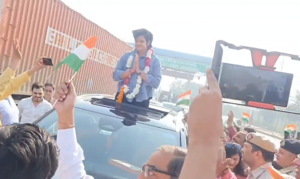 रोहद टोल पर पहुंचने के साथ ही उन्हें फूलमालाएं पहनाई गईं। इसके बाद यहीं से उनका रोड शो शुरू हो गया, जिसमें ADC नरेंद्र कुमार, भाजपा जिला अध्यक्ष रणवीर ढाका, कांग्रेस युवा नेता हेमंत बख्शी, शेफाली के दादा संतलाल, पिता संजीव वर्मा और परिवार के अन्य लोग मौजूद हैं।