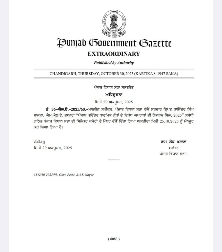 ਇਹ ਕਮੇਟੀ ਬੇਅਦਬੀ ਦੇ ਮਾਮਲਿਆਂ ਵਿੱਚ ਸਖ਼ਤ ਕਾਨੂੰਨੀ ਕਾਰਵਾਈ ਅਤੇ ਸਜ਼ਾ ਦੀ ਸੰਭਾਵਨਾ ‘ਤੇ ਵਿਚਾਰ ਕਰਨ ਲਈ ਬਣਾਈ ਗਈ ਸੀ।