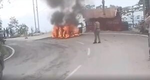 मसूरी-देहरादून रोड पर आग का गोला बनी चलती कार, परिवार के 5 लोग ने भागकर बचाई अपनी जान