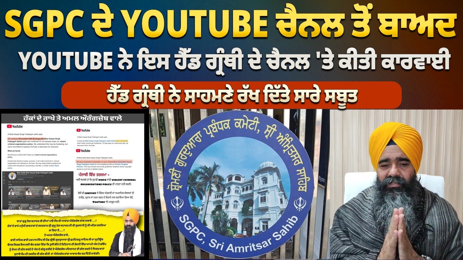 Watch Now: SGPC ਦੇ Youtube ਚੈਨਲ ਤੋਂ ਬਾਅਦ Youtube ਨੇ ਇਸ ਹੈੱਡ ਗ੍ਰੰਥੀ ਦੇ ਚੈਨਲ ‘ਤੇ ਕੀਤੀ ਕਾਰਵਾਈ..